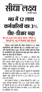 भोपाल। मध्य प्रदेश की मोहन सरकार ने 12 लाख कर्मचारियों और पेंशनर्स को 3% महंगाई भत्ता (DA) और महंगाई राहत (DR) देने का आदेश जारी कर दिया है। कर्मचारियों और पेंशनर्स को बढ़ा हुआ पैसा अप्रैल के वेतन के साथ मई में मिलेगा।