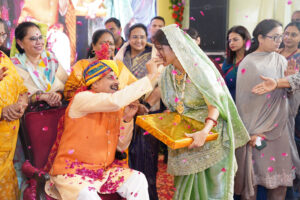 मुख्यमंत्री डॉ. यादव ने भाईदूज के पावन पर्व पर सभी लाड़ली बहनों पर पुष्पवर्षा कर भाईदूज की बधाई देकर मुख्यमंत्री निवास में आत्मीय स्वागत किया। कार्यक्रम में बड़ी संख्या में उपस्थित बहनों ने मुख्यमंत्री को तिलक लगाया, साफा पहनाया, नारियल भेंट कर अभिनंदन किया। मुख्यमंत्री डॉ. यादव ने बहनों को उपहार भेंट दी और मिठाई खिलाकर आभार जताया। कार्यक्रम में मौजूद लाड़ली बहनों ने भाई-बहन के प्रेम और स्नेह पर केन्द्रित निमाड़ी लोकगीत गाये, नृत्य किया और परम्परागत स्वर लहरियों की प्रस्तुति देकर कार्यक्रम स्थल को अपनत्व से भाव-विभोर कर दिया। लाड़ली बहनों ने मुख्यमंत्री डॉ. यादव का तिलक कर उनकी दीर्घायु, उत्तम स्वास्थ्य एवं प्रदेश की खुशहाली की कामना की।