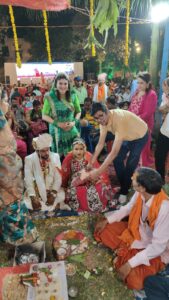 इंदौर नवलखा स्थित कांटाफोड़ शिव मंदिर ट्रस्ट एवं भक्त मंडली की ओर से बुधवार को गाँधी हॉल में सम्पन्न हुए सर्वजातीय सामूहिक विवाह सम्मेलन में शामिल 25 नवयुगलों को नवरात्रि में माँ दुर्गा की शक्ति से अभिमंत्रित साड़ियाँ एवं सुहाग सामग्री भेंट की गई। मंदिर ट्रस्ट के अध्यक्ष विष्णु बिंदल, टीकमचंद गर्ग एवं संयोजक बीके गोयल ने बताया कि प्रतिवर्ष नवरात्रि में मंदिर समिति द्वारा भक्तों की ओर से मातारानी को समर्पित किए गए नूतन वस्त्रों को संरक्षित कर सुरक्षित रखा जाता है। बुधवार को क्षेत्र के विधायक गोलू शुक्ला द्वारा आयोजित सर्वजातीय सामूहिक विवाह में शामिल 25 जोड़ों को मंदिर ट्रस्ट की ओर से श्रीमती मुग्धा शुक्ला, भक्त मंडल के संदीप गोयल एवं अन्य बंधुओं द्वारा पंडितों के सानिध्य में वैदिक मंत्रोच्चार के बीच नूतन साड़ियाँ, अक्षत, कुमकुम एवं सुहाग सामग्री भेंट की गई। इस मौके पर मंदिर समिति के अध्यक्ष विष्णु बिंदल, टीकमचन्द गर्ग, सुभाष बजरंग एवं अन्य गणमान्य बंधु भी उपस्थित थे जिन्होंने नवयुगलों को यशस्वी एवं मंगलमय दाम्पत्य जीवन के लिए शुभकामनाओं सहित उपहार भेंट किए। मंदिर समिति एवं भक्त मंडल की ओर से शहर में आयोजित विभिन्न सामूहिक विवाह कार्यक्रमों में लाडली बेटियों को समय-समय पर उपहार एवं नूतन वस्त्र भेंट किए जाते रहे हैं।
