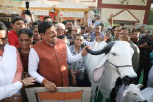 मुख्यमंत्री डॉ. मोहन यादव आज इंदौर में श्रीअन्न (मिलेट्स) फूड फेस्टिवल का अवलोकन कर जैविक महोत्सव को सराहा। यहाँ प्रदेश के विभिन्न जिलों से आये किसानों द्वारा लगाई गई प्रदर्शनी का अवलोकन कर किसानों से जानकारी भी ली। इंदौर के ग्रामीण हाट बाजार ढक्कन वाला कुआं पर आयोजित जैविक महोत्सव पर स्थापित गाय की प्रतिमा के साथ मुख्यमंत्री डॉ. यादव ने फ़ोटो भी खिंचवाए। इस दौरान नगरीय प्रशासन मंत्री श्री कैलाश विजयवर्गीय, जल संसाधन मंत्री श्री तुलसीराम सिलावट, सांसद श्री शंकर लालवानी, महापौर श्री पुष्यमित्र भार्गव, विधायक श्री रमेश मेंदोला, श्रीमती मालिनी गौड़, श्री महेंद्र हार्डिया, श्री मधु वर्मा सहित अन्य जनप्रतिनिधि एवं अधिकारीगण भी मौजूद थे ।