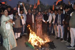 बांग्लादेश में हिंदू अल्पसंख्यकों पर हो रहे अत्याचारों के विरोध में अखिल भारतीय क्षत्रिय महासभा इंदौर एवं राजपूत समाज के विभिन्न संगठनों द्वारा मंगलवार को स्थानीय रीगल चौराहा स्थित गांधी प्रतिमा के समीप विरोध प्रदर्शन किया गया। इस दौरान प्रदर्शनकारियों ने बांग्लादेश के प्रधानमंत्री आसिफ यूनुस खान का पुतला दहन किया। अखिल भारतीय क्षत्रिय महासभा के दीपेंद्र सिंह सोलंकी ने बताया कि इस विरोध प्रदर्शन के माध्यम से देश और दुनिया को यह संदेश दिया गया है कि बांग्लादेश में अल्पसंख्यक हिंदुओं को योजनाबद्ध तरीके से निशाना बनाया जा रहा है, जिसे तत्काल रोका जाना चाहिए। उन्होंने प्रधानमंत्री श्री नरेंद्र मोदी एवं केंद्रीय गृहमंत्री श्री अमित शाह से आग्रह किया कि इस विषय को अंतरराष्ट्रीय मंच पर मजबूती से उठाते हुए कड़ी कार्रवाई की जाए। साथ ही युसूफ खान को मिले नोबेल पुरस्कार को वापस लेने की भी मांग की गई।