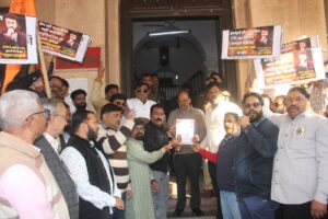 इंदौर| आष्टा थाना में श्री राजपूत करणी सेना के प्रमुख श्री अनुराग प्रताप सिंह राघव के विरुद्ध दर्ज एफआईआर के विरोध में संभाग, जिला स्तर और तहसील स्तर पर आक्रोश देखने को मिल रहा है। इसी क्रम में शुक्रवार को करणी सेना की ओर से विरोध स्वरूप इंदौर संभाग आयुक्त को ज्ञापन सौंपकर मामले को अनुचित और दुर्भावनापूर्ण बताते हुए तत्काल निरस्त करने की मांग की गई। करणी सेना के कमल सिंह जादौन, दिग्विजय सिंह, अजीत सिंह, ठाकुर संतोष सिंह, अमित सिंह जादौन और राहुल सिंह