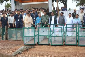 मुख्यमंत्री डॉ. मोहन यादव ने माँ नर्मदा नदी के पावन जल में 6 मगरमच्छों का कराया जलप्रवेश