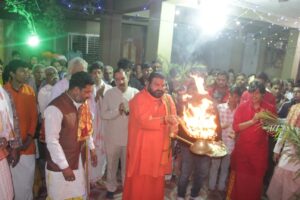 खाड़ी के मंदिर पर गत 23 दिसम्बर से भागवत भूषण आचार्य पं. राजेश शास्त्री के श्रीमुख से भागवत ज्ञान यज्ञ का दिव्य अनुष्ठान चल रहा था। समापन अवसर पर हंस पीठाधीश्वर श्रीमहंत रामचरणदास महाराज एवं महामंडलेश्वर महंत पवनदास महाराज के सानिध्य में श्रीजी कल्याणजी एवं संकट हरण वीर हनुमानजी महाराज का अन्नकूट महोत्सव आयोजित किया गया, जिसमें विधायक रमेश मेंदोला, पूर्व विधायक सुदर्शन गुप्ता, अशोक चौहान चांदू, प्रदेश भाजपा के प्रवक्ता दीपक जैन टीनू, एमआईसी सदस्य निरंजनसिंह चौहान गुड्डू, हरि अग्रवाल, कमलेश खंडेलवाल, राजा यादव, राजेश शर्मा, राजेन्द्र गर्ग एवं अशोक चतुर्वेदी सहित बड़ी संख्या में श्रद्धालुओं ने उपस्थित होकर पूजा-अर्चना के बाद यज्ञ-हवन में आहुतियां समर्पित की। अनुष्ठान में स्वामी रामबालक दास रामायणी, महामंडलेश्वर स्वामी राधे राधे बाबा, स्वामी यजत्रदास एवं अन्य संत-विद्वानों ने इस मौके पर सबके मंगल की कामनाएं व्यक्त की। बिदा ले रहे वर्ष 2025 की बिदाई एवं वर्ष 2026 की अगवानी में सभी देवी देवताओं से सुख-शांति एवं समृद्धि के लिए प्रार्थना की गई। अतिथियों का स्वागत श्रीमती वर्षा शर्मा, रुक्मणी शर्मा, गीता व्यास, मंजू शर्मा, ज्योति शर्मा, प्रफुल्ला शर्मा, हंसा पंचोली, हेमलता वैष्णव, मधु गुप्ता आदि ने किया। देर रात तक 5 हजार से अधिक श्रद्धालुओं ने कड़ाके की शीतलहर के बावजूद महाप्रसादी का पुण्यलाभ उठाया।