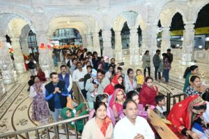 इंदौर। शहर के प्रमुख आस्था केंद्र अन्नपूर्णा मंदिर पर अंग्रेजी नववर्ष की पहली सुबह से देर रात तक करीब सवा लाख भक्तों ने माँ अन्नपूर्णा की शरण में पहुंचकर पूजा, अर्चना एवं प्रार्थना की। मंदिर के अधिष्ठाता महामंडलेश्वर स्वामी विश्वेश्वरानंद गिरि के सानिध्य में मंदिर पर सुबह से भक्तों की सुविधा के लिए अनेक प्रबंध किए गए थे। बैरीकेडिंग के साथ ही दिनभर प्रसाद वितरण का सिलसिला भी चलता रहा। मंदिर के संचालक स्वामी जयेंद्रानंद गिरि एवं न्यासी श्याम सिंघल ने बताया कि मातारानी का इस अवसर पर विशेष श्रृंगार कर उन्हें ५३ भोग समर्पित किए गए। भक्तों के आगमन का क्रम सुबह 6 बजे से ही शुरू हो गया था जो मध्यरात्रि तक चलता रहा। शाम को महाआरती में भी मंदिर के न्यासी टीकमचंद गर्ग, पवन सिंघानिया, दिनेश मित्तल, श्याम सिंघल, सत्यनारायण शर्मा, सुनील गुप्ता, विष्णु बिंदल सहित हजारों श्रद्धालु शामिल हुए। मंदिर पर सुबह से शाम तक भक्तों की कतारें लगातार लगी रहीं। भक्तों के सहयोग से सभी के लिए प्रसाद वितरण का क्रम भी निरंतर चलता रहा।