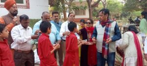जायंट्स ग्रुप ऑफ़ मालवा के तत्वावधान में नर्मदा किनारे स्थित माँ शरणम आश्रम पर अंतर्राष्ट्रीय संस्था जायंट्स इंटरनेशनल की सेन्ट्रल कमिटी के सदस्य श्याम गोयल के मुख्य आतिथ्य में आश्रम के वेदपाठी विद्यार्थियों को नए वस्त्र एवं स्टेशनरी सामग्री भेंट की गई। इस अवसर पर फेडरेशन काउंसिल मेम्बर रमणिक लाल सोनी, यूनिट डायरेक्टर अनिल व्यास, ग्रुप अध्यक्ष सुनील पांडे, वरिष्ठ उपाध्यक्ष डॉ. प्रवीण शर्मा सहित ग्रुप के सदस्यों ने विद्यार्थियों को तिलक लगाकर वैदिक मंत्रोच्चार के बीच सामग्री भेंट की। सामूहिक जायंट्स प्रार्थना भी की गई। अतिथियों का स्वागत चरणजीत सिंह एवं गुरजीत सिंह ने किया। आश्रम के अधिष्ठाता स्वामी शरणानंद महाराज का शॉल-श्रीफल भेंट कर सम्मान किया गया। इस अवसर पर नियमित सेवाएँ देने के लिए डॉ. प्रवीण शर्मा का सम्मान भी किया गया। ग्रुप के मानद सचिव एमजी पारीख, श्रीमती शकुन गोयल, उमा व्यास, कामिनी पांडे, डॉ. के.एम. शर्मा, प्रफुल्ल उपाध्याय, डॉ. नरेन्द्र शर्मा ने भी डॉ. शर्मा का सम्मान किया। माँ नर्मदा को 101 फीट लंबी चुनरी समर्पण कर दीपदान एवं संगीतमय आरती तथा प्रसाद वितरण के साथ समापन हुआ। संचालन सुनील पांडे ने किया और आभार माना एमजी पारीख ने।