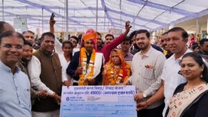 कार्यक्रम के दौरान शासन की योजना के अंतर्गत 83 नवविवाहित दम्पत्तियों को 49 हजार रूपए के सांकेतिक बैंक चेक प्रदान किए गए, जिससे उन्हें नवजीवन की शुरुआत में आर्थिक सहयोग मिल सके। इस अवसर पर अतिथियों ने वर-वधुओं को आशीर्वाद देते हुए उनके सुखी, समृद्ध एवं सफल दांपत्य जीवन की कामना की।