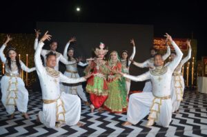 इंदौर ’ ’नाचो आज, झूमो आज, गाओ खुशी के गीत रे… ’ ‘राजा की आएगी बरात…’ ‘आओ सखी मुझे मेहंदी लगा दो…’मानों हमारा एहसान कि लडके ने हां कर दी…’ ’गंगा मैया में जब तक पानी रहे…’ ये चंद गीतों की बानगी है जो शुक्रवार शाम श्री अग्रसेन महासभा द्वारा बायपास स्थित भवन पर प्रारंभ हुए 4 युगलों के दो दिवसीय सामूहिक परिणय उत्सव के शुभारंभ पर आयोजित महिला संगीत में बड़े उत्साह के साथ गूंजे। बाद में यह महफिल फाग महोत्सव एवं फूलों की होली में बदल गई। वर-वधू पक्ष के दूर-दूर से आए मेहमानों और संस्था के पदाधिकारियों ने महिला संगीत के इस आयोजन को कुछ इस अंदाज में संजोया था मानो घर की ही शादी हो। शनिवार को सामाजिक सरोकार के लिए शपथ ग्रहण के साथ नवयुगल आठ फेरे लेकर विदा होंगे। आठवां फेरा शहर को नौंवी बार स्वच्छता में अव्वल बनाने में सहयोग करने तथा किसी भी मांगलिक प्रसंग पर भोज में जूठन नहीं छोड़ने के संकल्प के साथ लिया जाएगा।