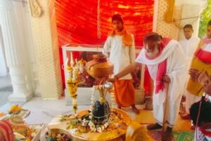 इंदौरी। महाशिवरात्रि के महापर्व पर रविवार को एयरपोर्ट रोड, पीलियाखाल स्थित प्राचीन हंसदास मठ पर हंस पीठाधीश्वर महामंडलेश्वर स्वामी रामचरणदास महाराज एवं महामंडलेश्वर महंत पवनदास महाराज के सानिध्य में काशी विश्वनाथ एवं हंसेश्वर महादेव का नमक-चमक से महारुद्राभिषेक संपन्न हुआ।