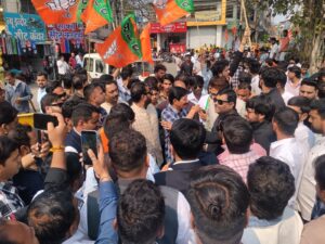 दिल्ली में एआई इम्पैक्ट समिट के दौरान कांग्रेस कार्यकर्ताओं के अर्धनग्न प्रदर्शन के विरोध में भारतीय जनता युवा मोर्चा (भाजयुमो) इंदौर कांग्रेस कार्यालय का घेराव करने भाजयुमो कार्यकर्ता गांधी भवन पहुंचे थे जन्हा पुलिस ने बैरिकेडिंग कर के रोक दिया इसके बाद प्रदर्शन उग्र हो गया और दोनों ओर से हंगामे की स्थिति बन गई।